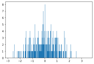 Ensuite il y a un truc chiant parce que le cran, c’est-à-dire le nombre de bâtonnets que le graphe va afficher est paramétré à 10 par défaut. Donc s’il y a peu de valeurs, les barres seront épaisses et ça fausse l’interprétation. On ne sait pas trop combien vaut la barre. On peut ajuster l’intervalle avec le param bins :