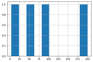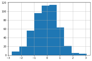 df.hist()Premièrement je crée les données. Puis je crée une Serie pandas que j’initialise avec les données. Puis je crée l’histogramme avec pandas.